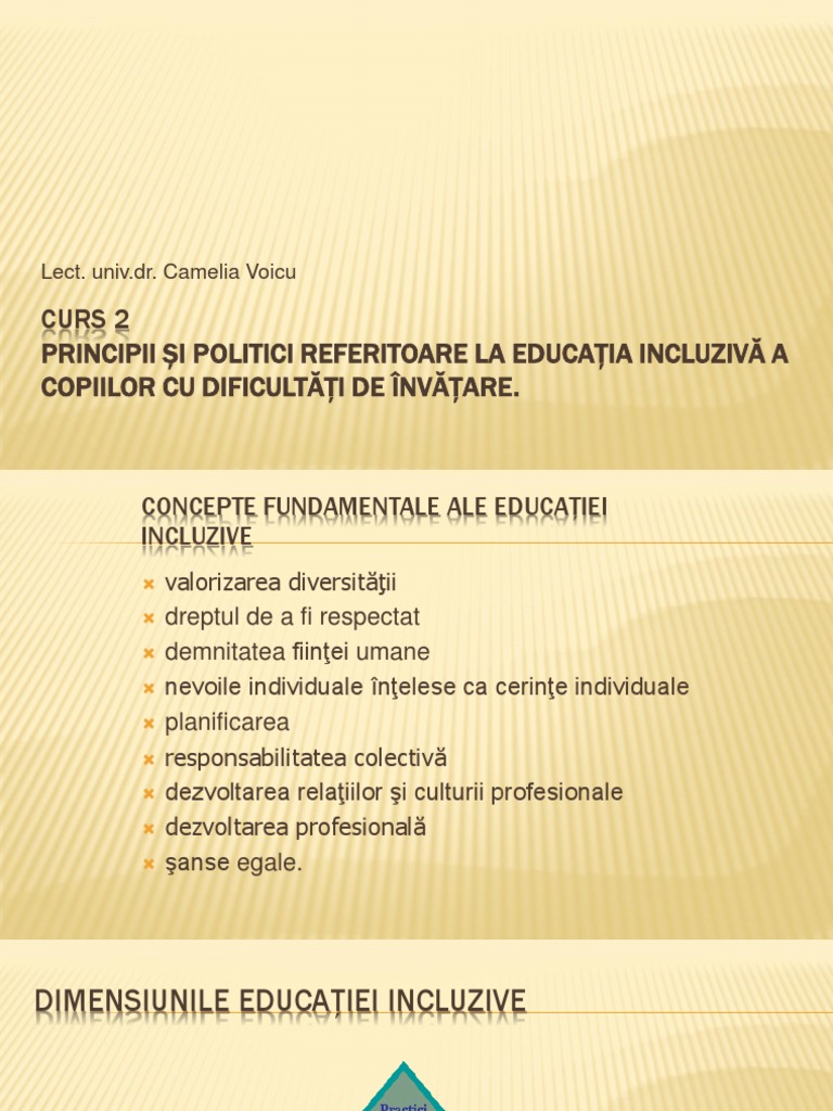 PRINCIPII ȘI POLITICI REFERITOARE LA EDUCAȚIA INCLUZIVĂ A