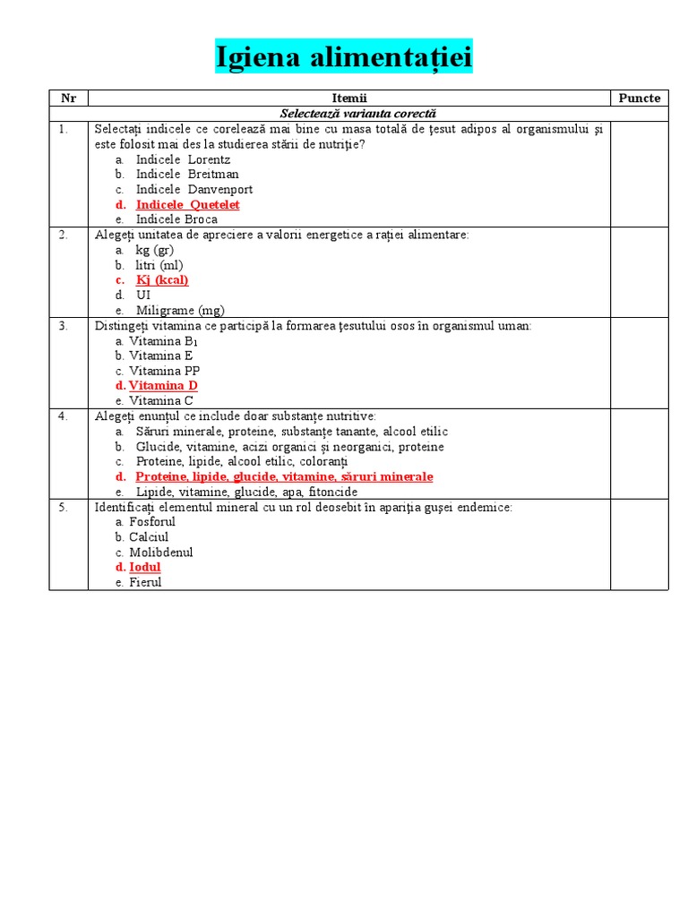 Nr Itemii Puncte