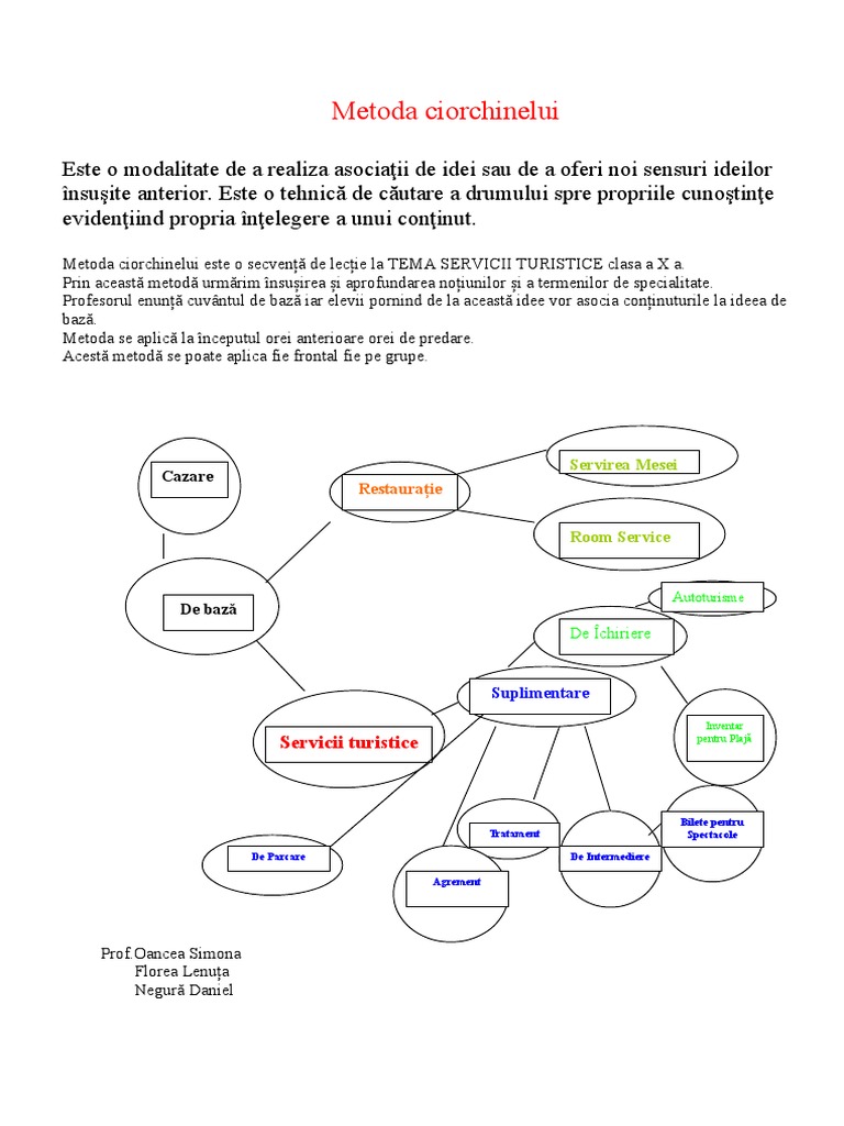 Metoda ciorchinelui este o secvență de lecție la TEMA SERVICII TURISTICE clasa a X a.