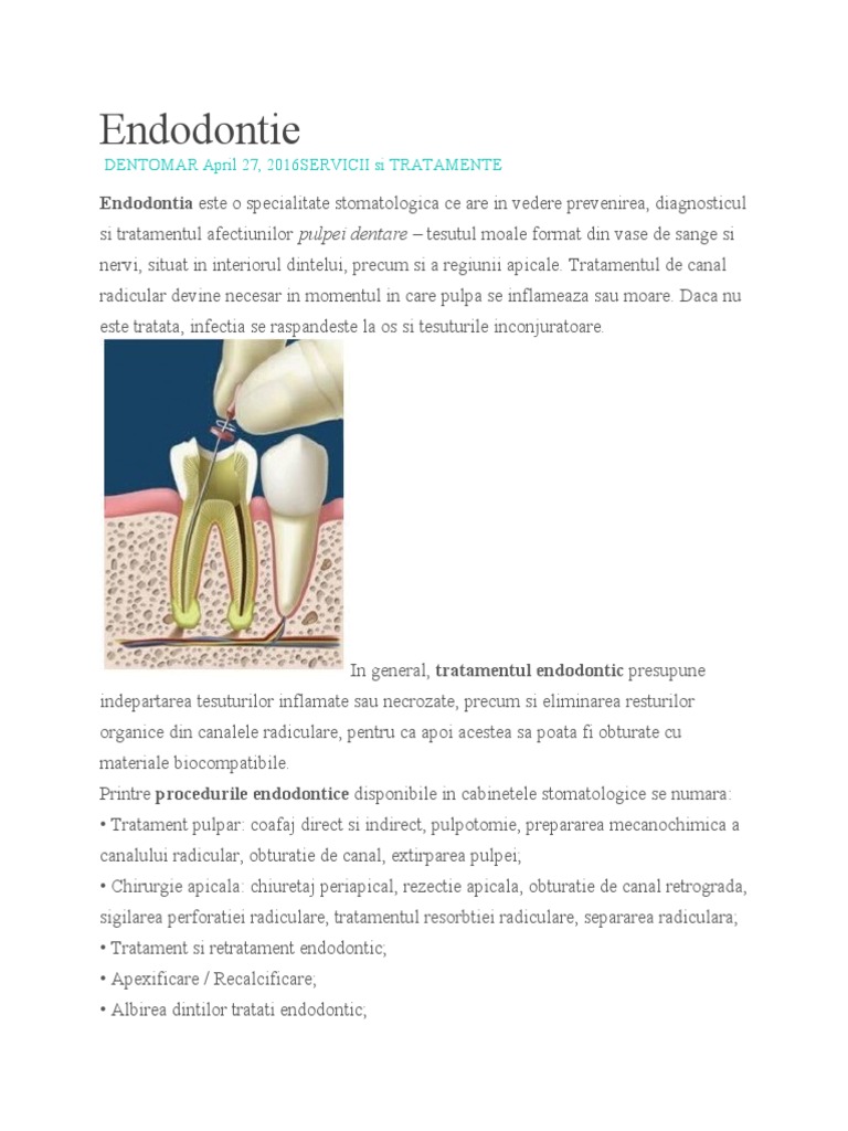 endodontic reprezinta o serie de proceduri create pentru a mentine starea de sanatate