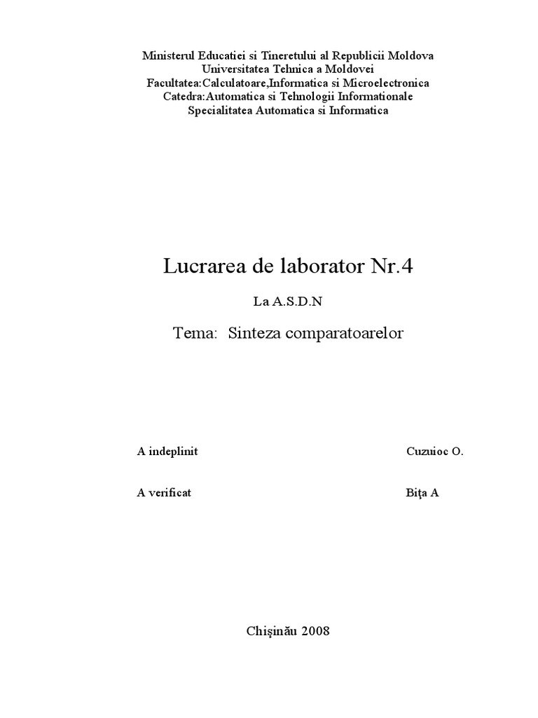 Sinteza unui comparator care este destinat de a stabili dacă un număr oarecare