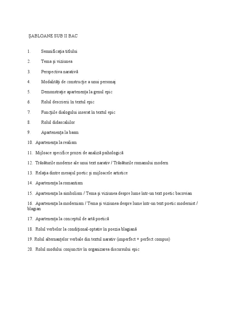 20. ȘABLON - Rolul modului conjunctiv în organizarea discursului epic