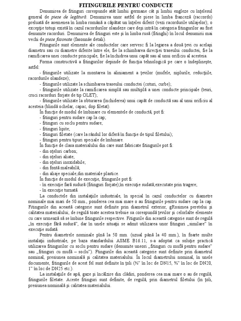 Fitingurile sunt elemente ale conductelor care servesc fi la legarea a două ţevi cu acelaşi