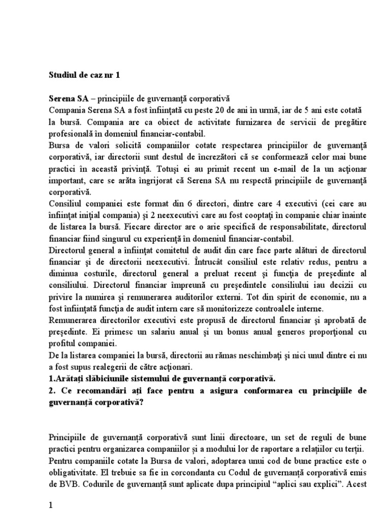 important, care se arăta îngrijorat că Serena SA nu respectă principiile de guvernanţă