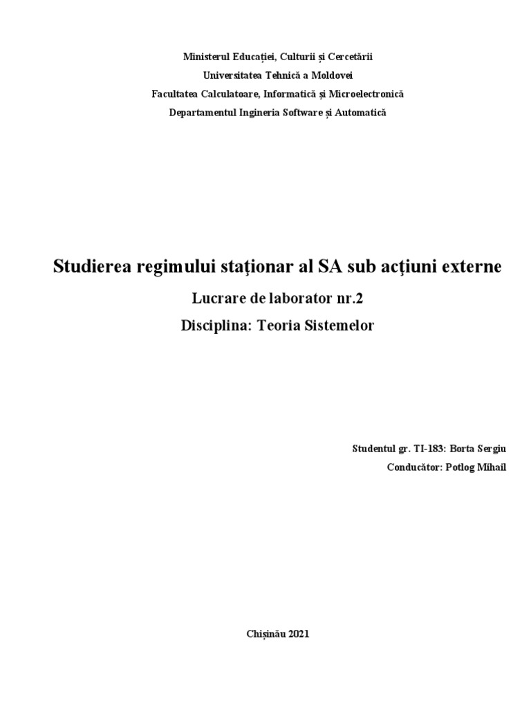 Disciplina: Teoria Sistemelor