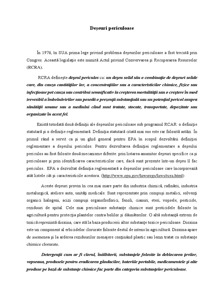 RCRA defineşte deşeul periculos ca: un deşeu solid său o combinaţie de deşeuri solide