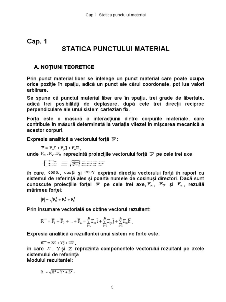 Cap.1 Statica punctului material