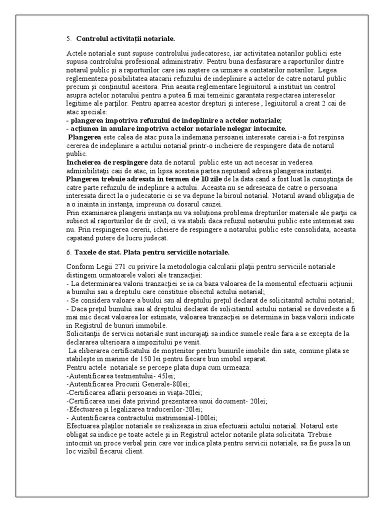 5. Controlul activitaţii notariale.