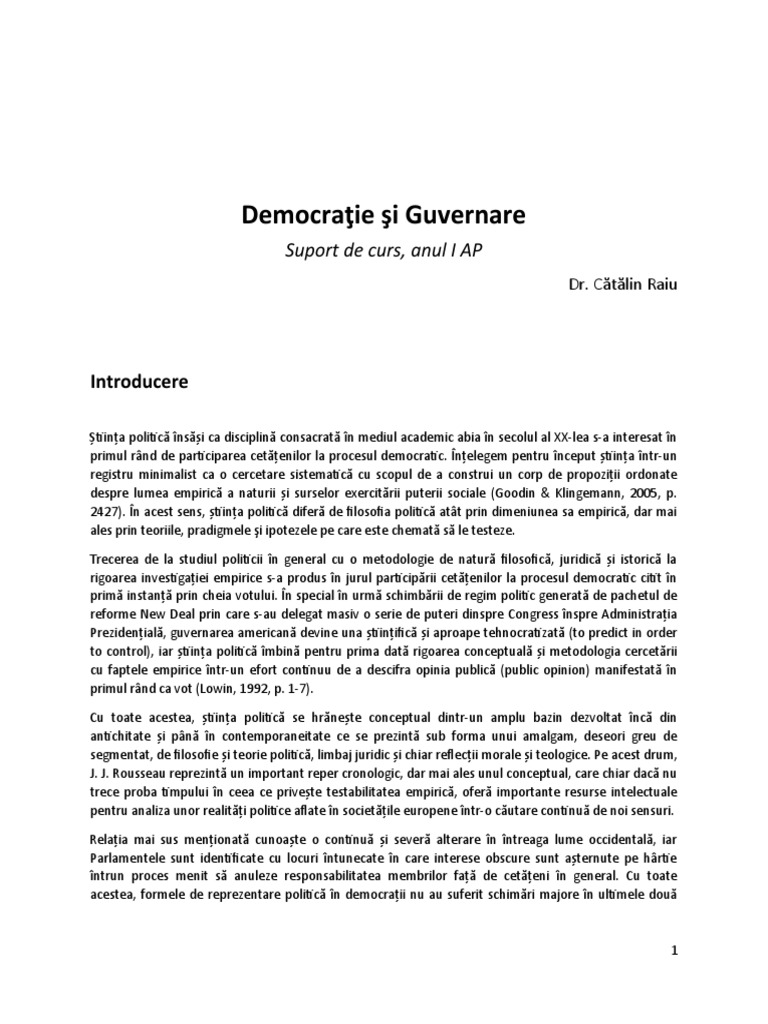 primul rând de participarea cetățenilor la procesul democratic. Înțelegem pentru început știința într-un