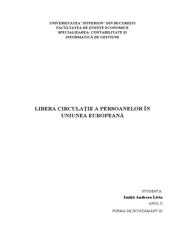 Dupa cum am mai mentionat, libera circulatie a persoanelor constituie una dintre cele