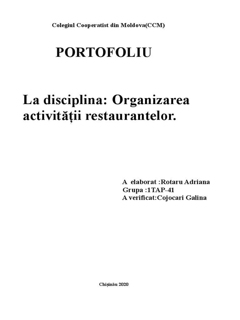 Tema 1:Aspecte conceptuale ale unității de curs ,,Organizarea activității restaurantelor’’