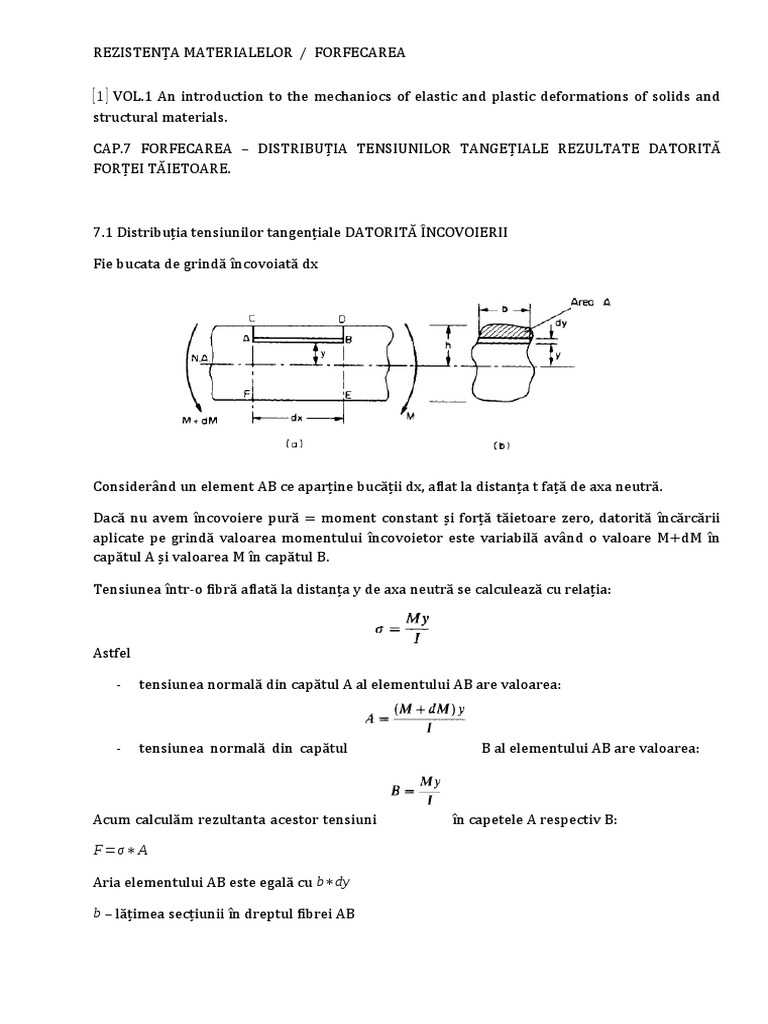 CAP.7 FORFECAREA – DISTRIBUȚIA TENSIUNILOR TANGEȚIALE REZULTATE DATORITĂ