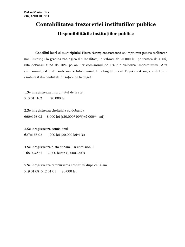 unei investiţii la grădina zoologică din localitate, în valoare de 20.000 lei, pe termen de 4 ani,
