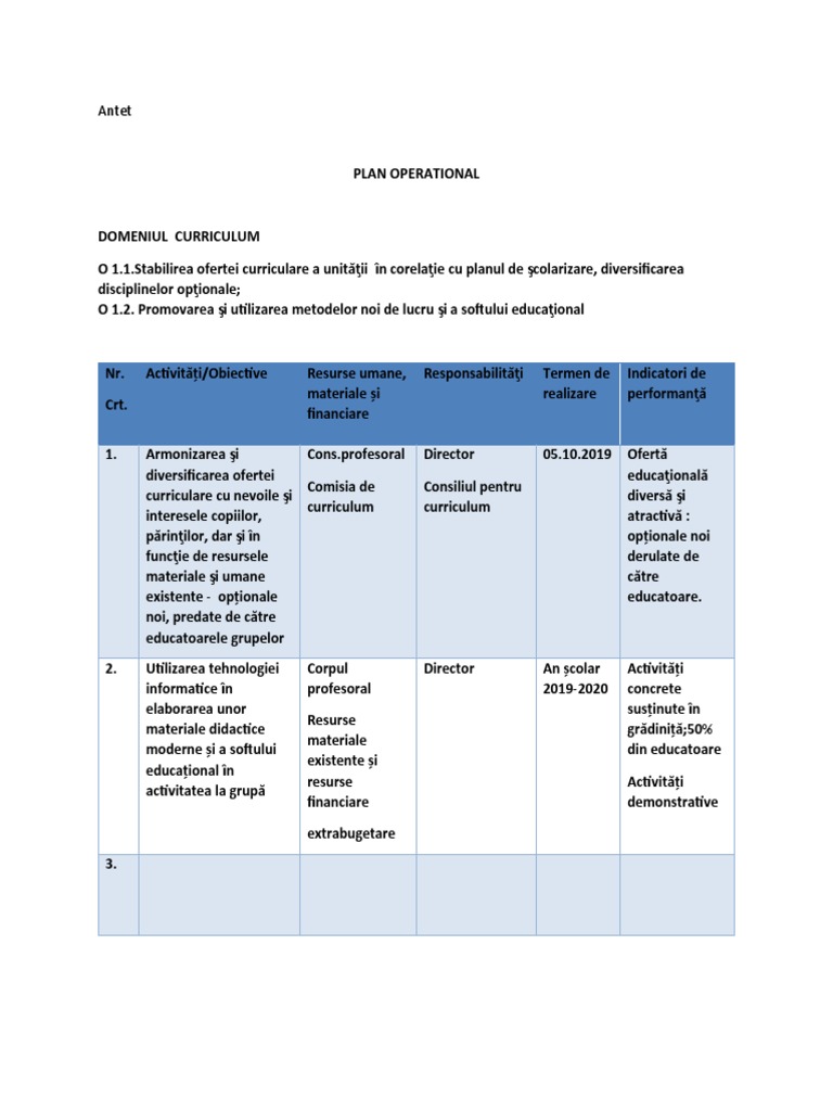 Nr. Activități/Obiective Resurse umane, Responsabilităţi Termen de Indicatori de