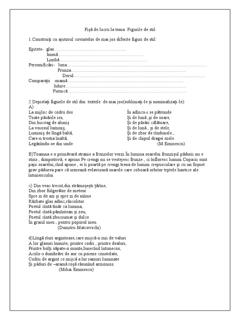 [Link]ți figurile de stil din textele de mai jos(subliniați-le și nominalizați-le):