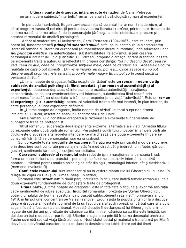 În opinia mea, opera literară „Ultima noapte de dragoste, întâia noapte de război” de Camil