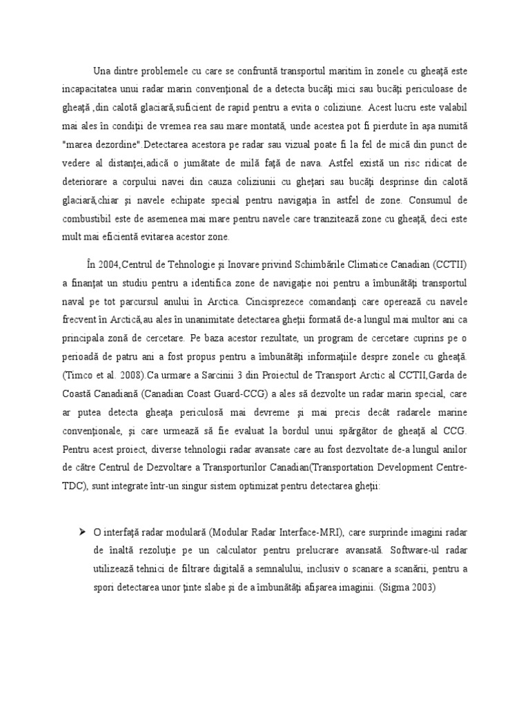 detectarea bucăţilor de gheaţă pe o distanţă mare, nici caracteristicile acestora. Eu voi da