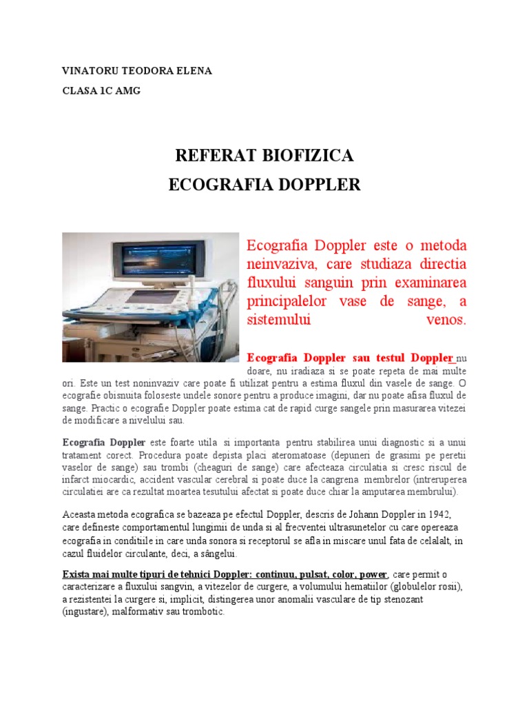 a nivelului sau frecventa. In timpul unei ecografii Doppler, un medic specializat in imagistica cu