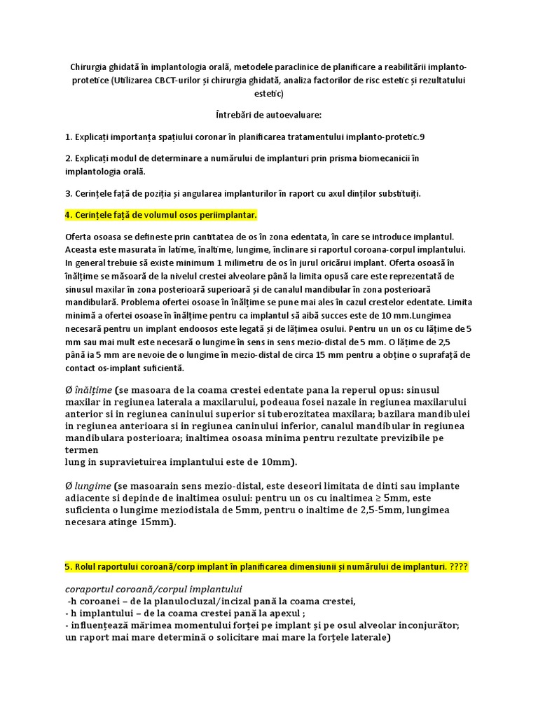 1. Explicați importanța spațiului coronar în planificarea tratamentului implanto-protetic.9