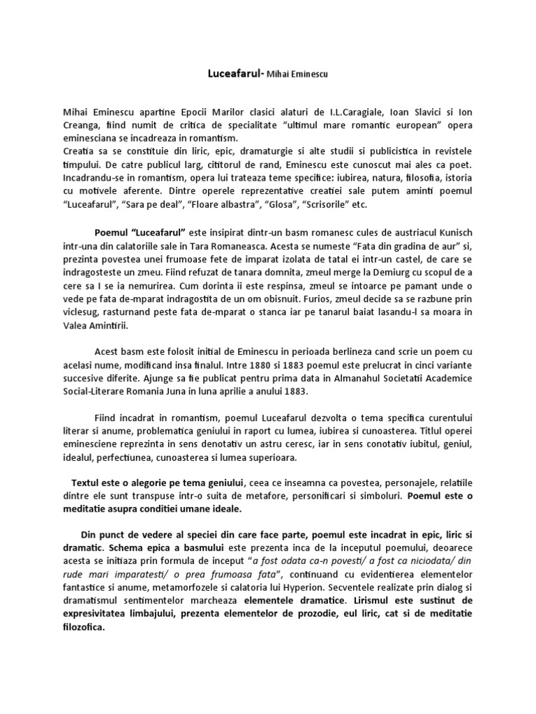 Luceafarul- Mihai Eminescu