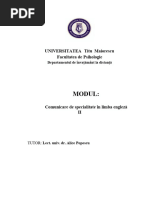 limba engleză dobândite în formarea preuniversitară a studentului ID, elemente lingvistice şi de