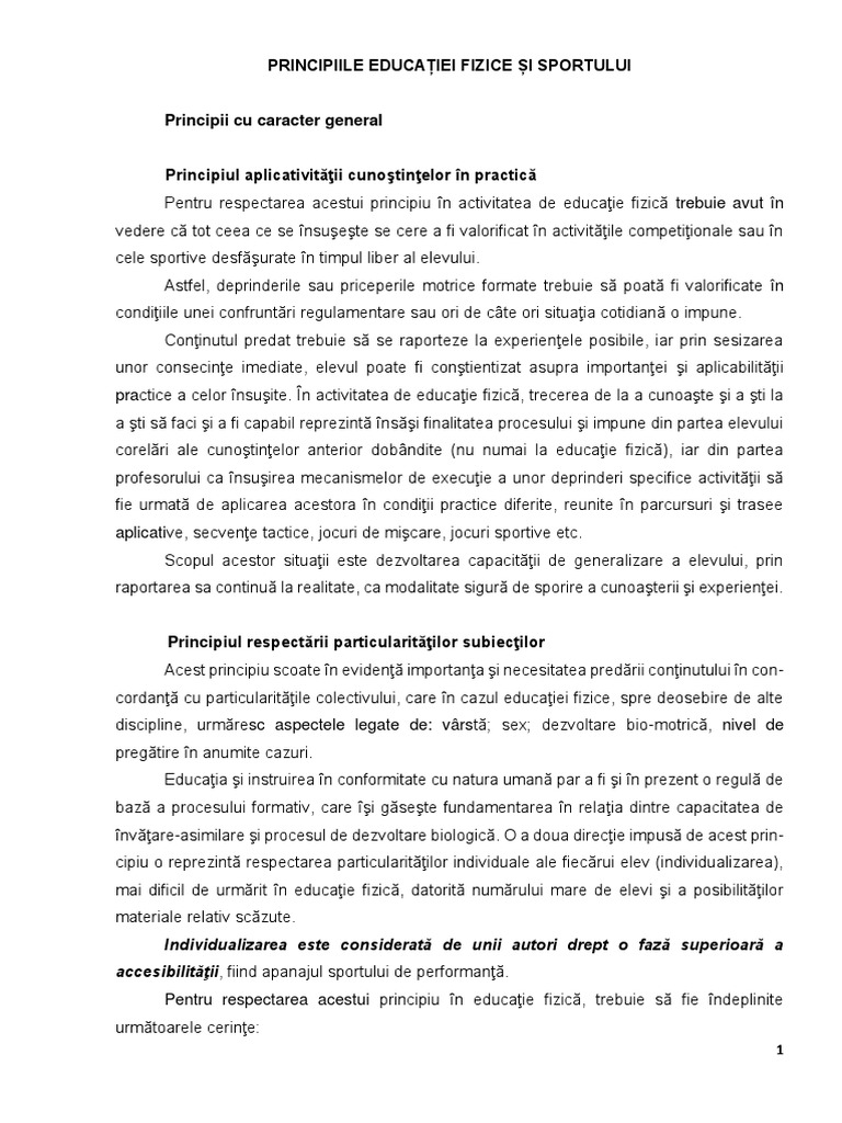 PRINCIPIILE EDUCAȚIEI FIZICE ȘI SPORTULUI