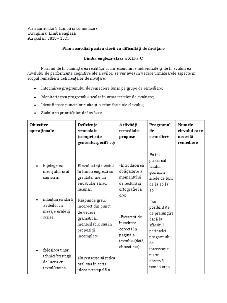 Întocmirea programului de remediere lunar pe grupe de remediere;