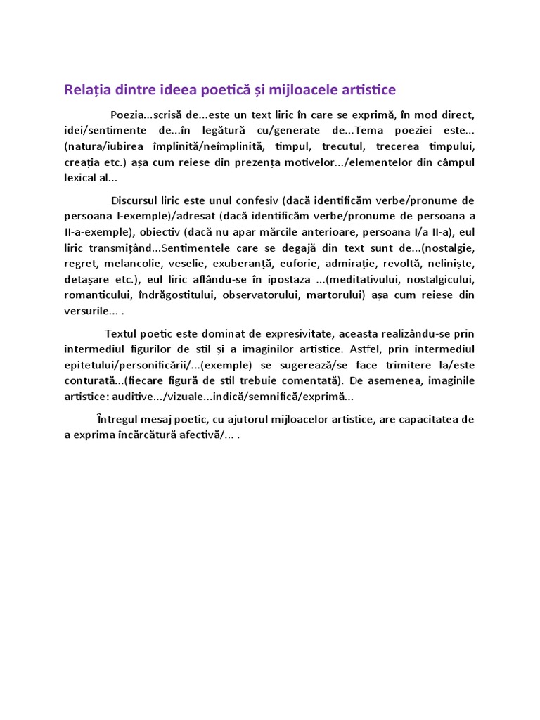 idei/sentimente de...în legătură cu/generate de...Tema poeziei este...
