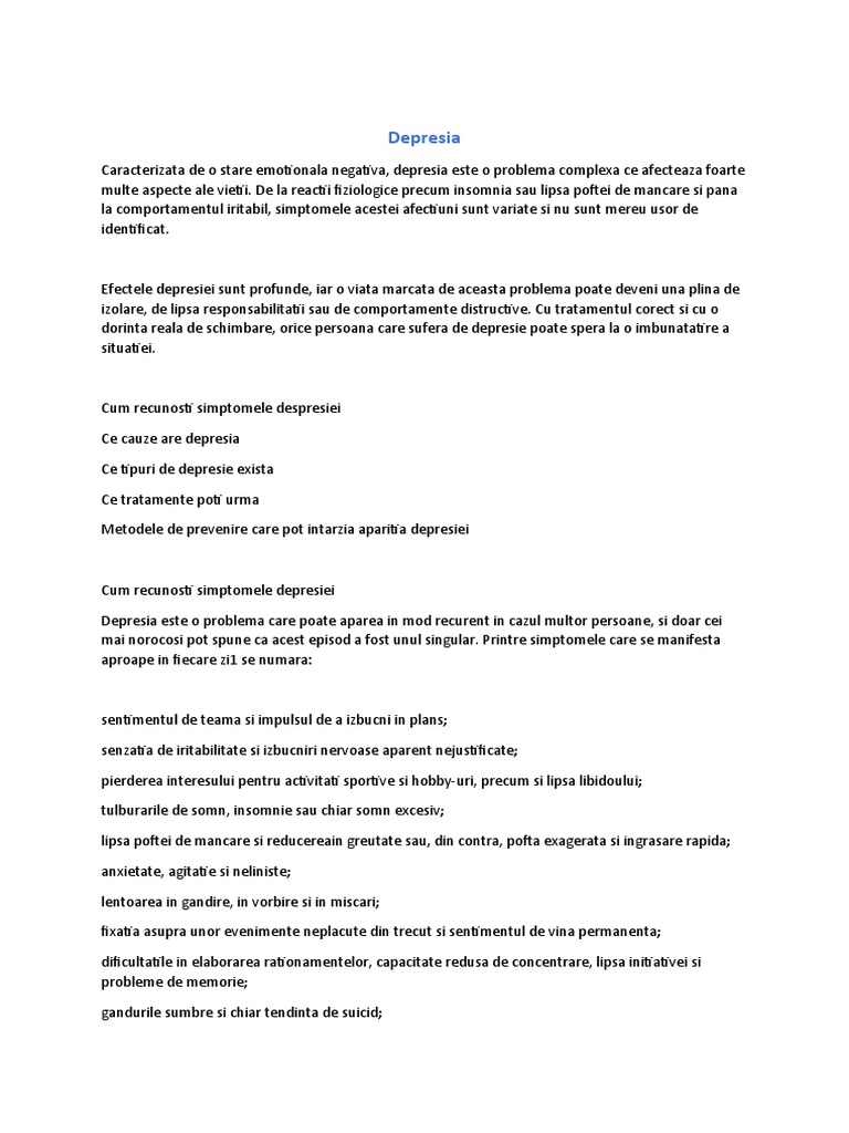 Depresia este o problema care poate aparea in mod recurent in cazul multor persoane, si doar cei
