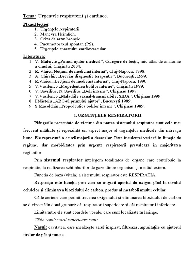 1. V. Mateicic „Primul ajutor medical”, Culegere de lecţii, mic atlas de anatomie