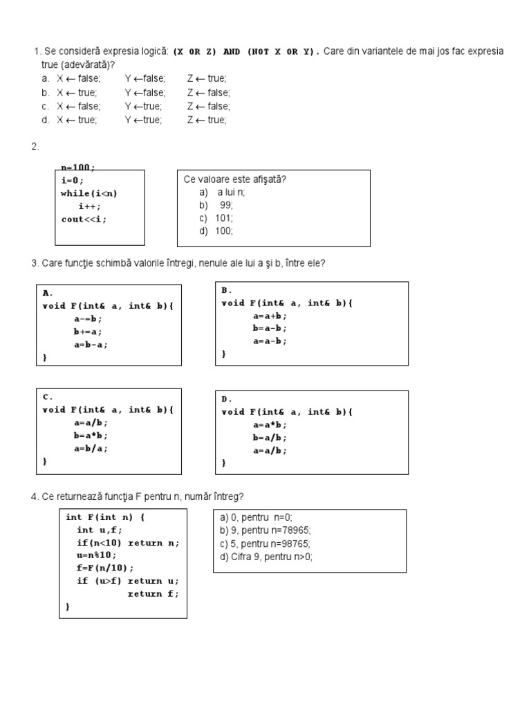 subprogramului ce urmează (alegeţi variantele corecte): // Niciun rasp. Corect??? -_-