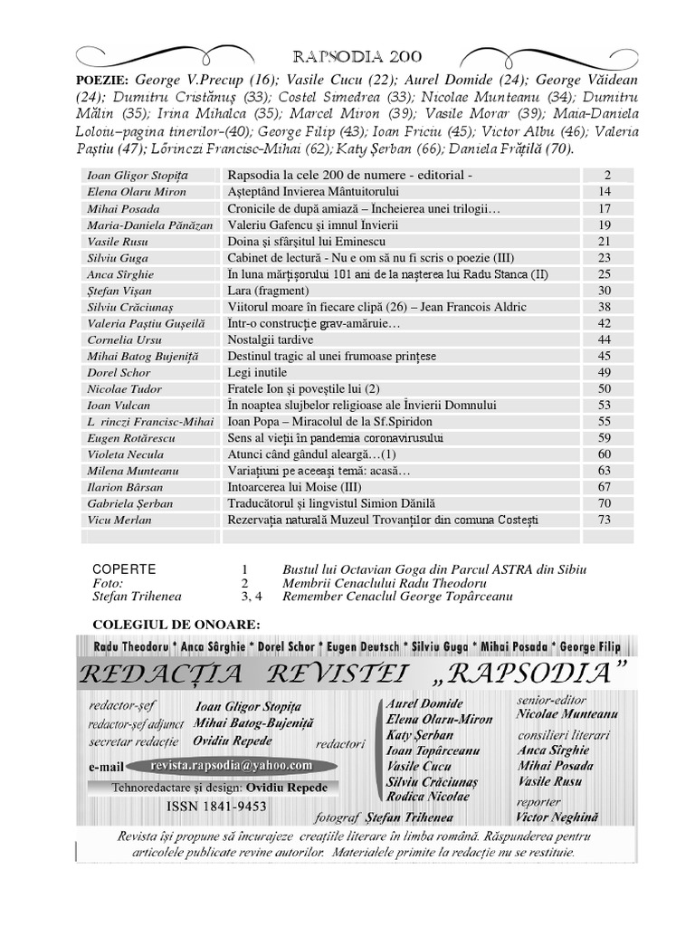 Ioan Gligor Stopița Rapsodia la cele 200 de numere - editorial - 2