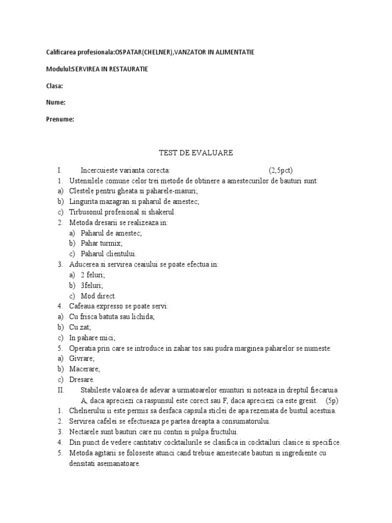 III. Enumera etapele de pregatire a unei metode de obtinere a bauturilor in amestec la