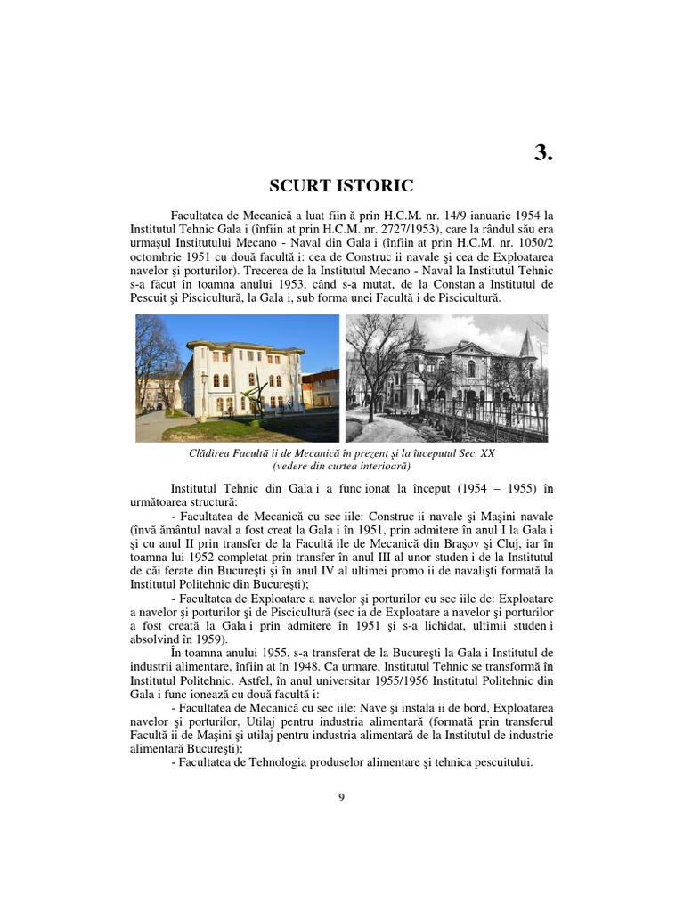 3225/1960, în cadrul Facultăţii de Mecanică a Institutului Politehnic din Galaţi