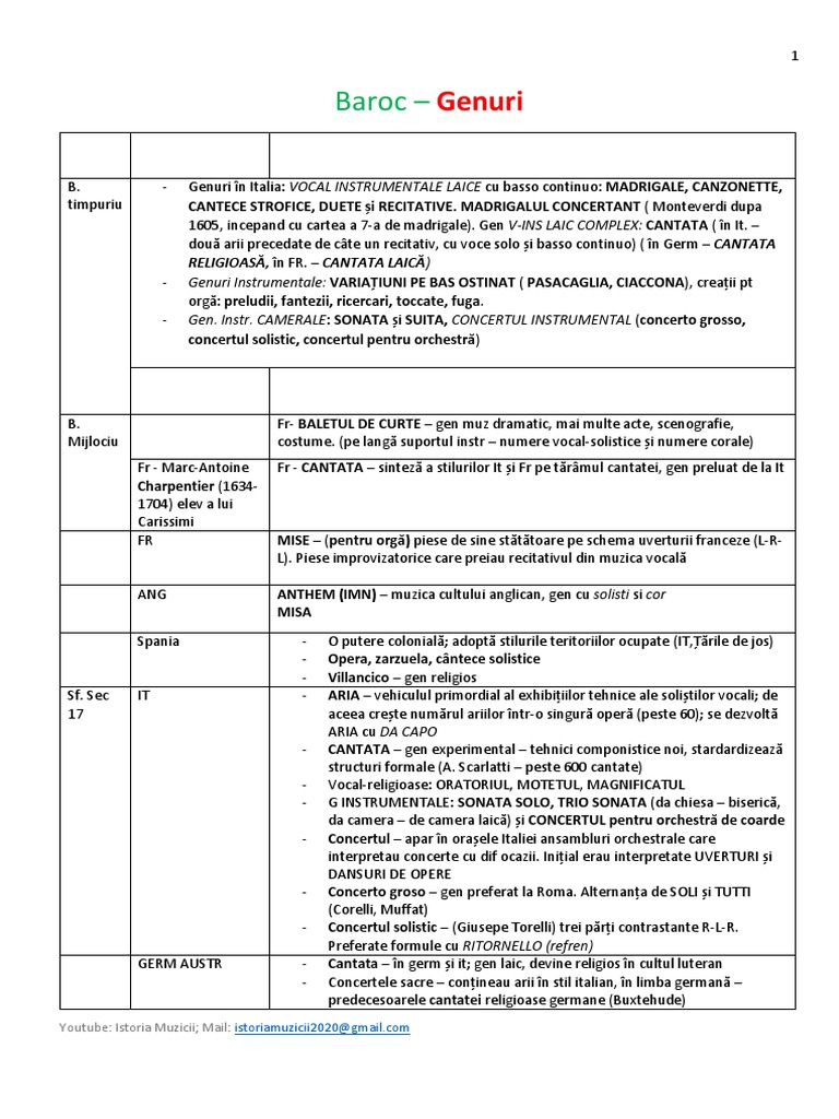Baroc – Genuri