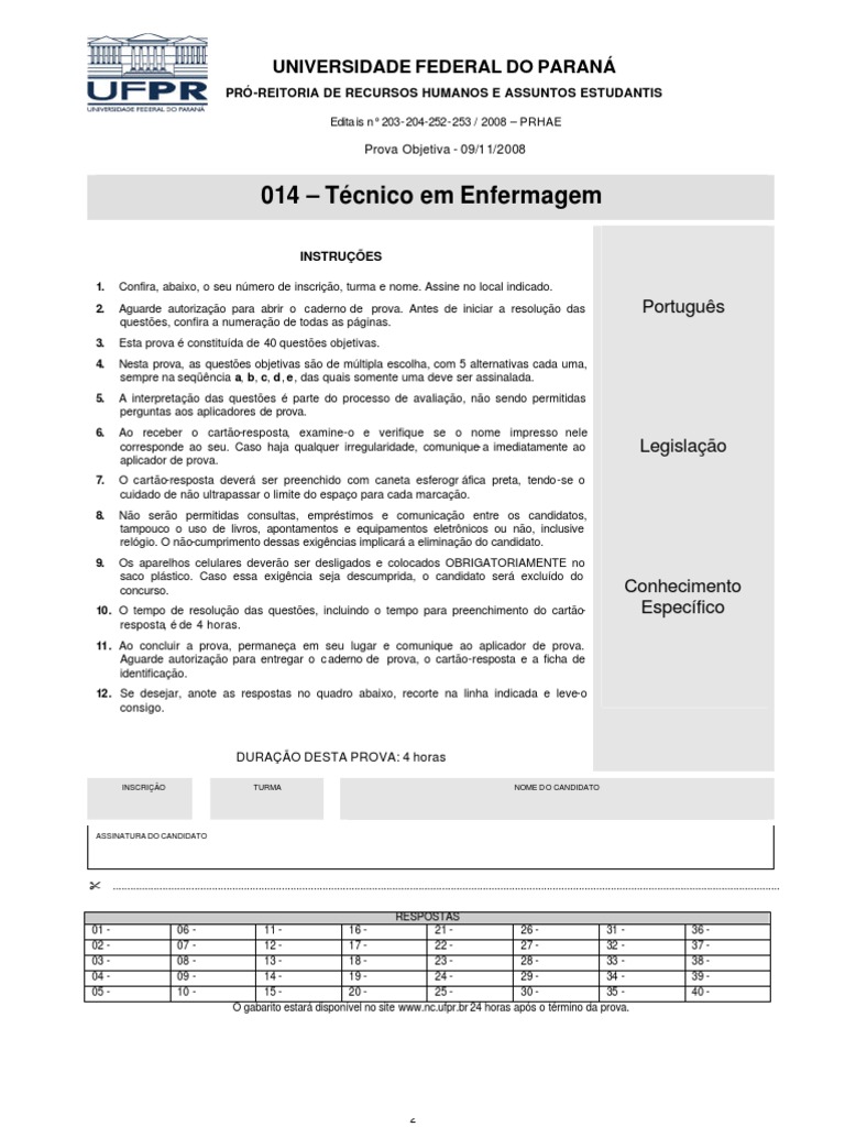 O gabarito estará disponível no site www.nc.ufpr.br 24 horas após o término da prova.