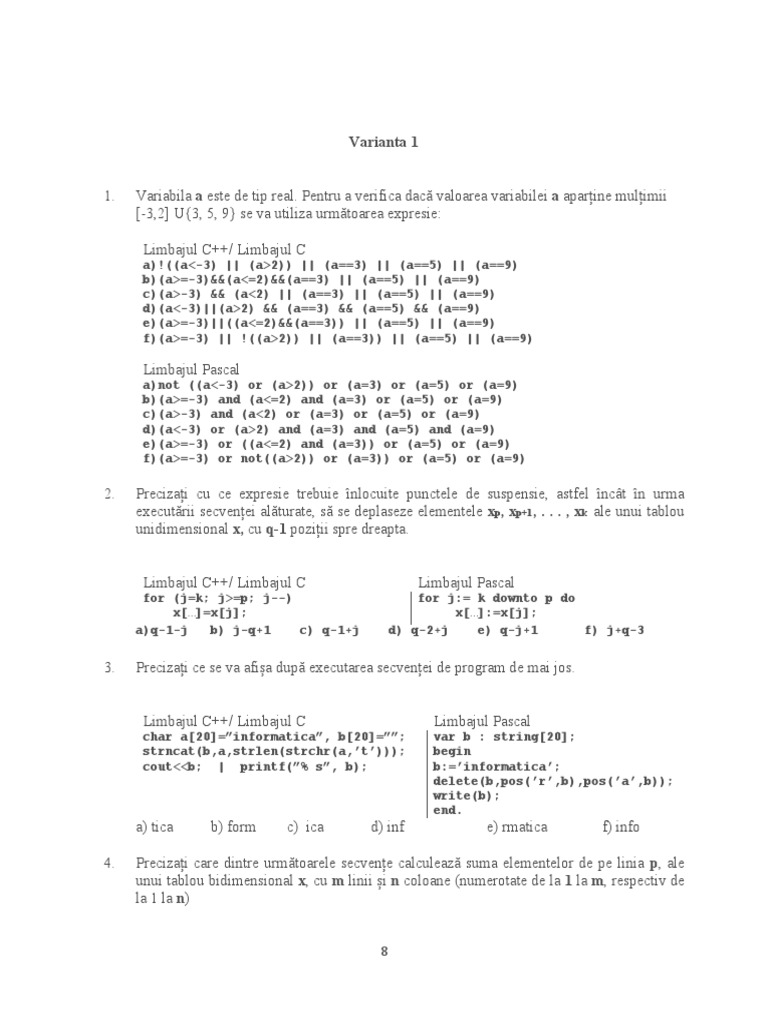 1. Variabila a este de tip real. Pentru a verifica dacă valoarea variabilei a aparține mulțimii
