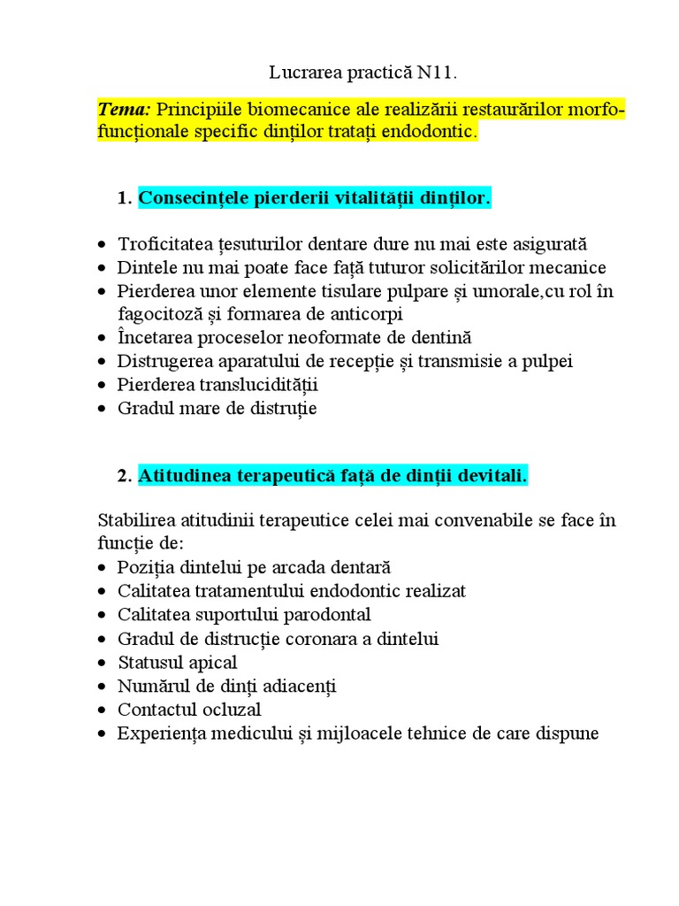 Tema: Principiile biomecanice ale realizării restaurărilor morfo-