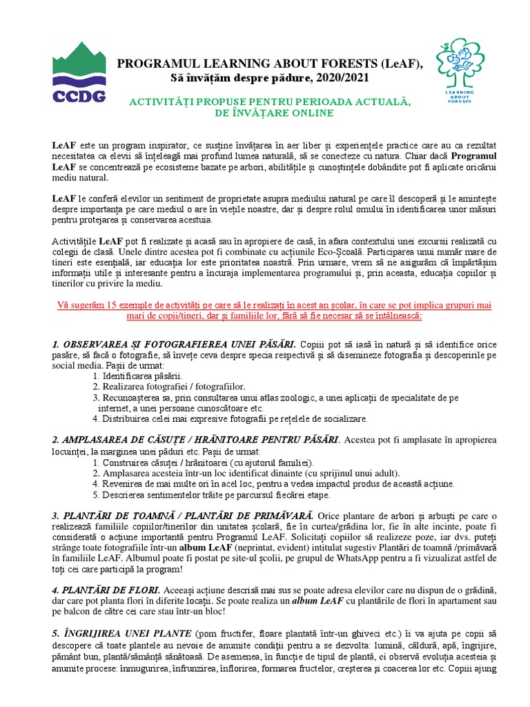 considerată o acțiune importantă pentru Programul LeAF. Solicitați copiilor să realizeze poze, iar dvs. puteți