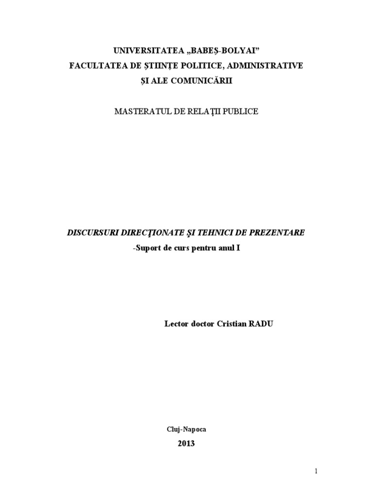 de a le utiliza în conceperea discursurilor de diverse tipuri. Masteranzii se vor familiariza