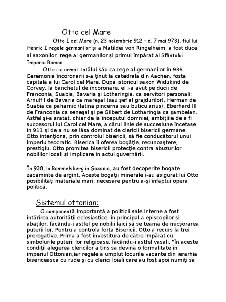 puterii lor. Pentru a controla forţa Bisericii, Otto a recurs la trei
