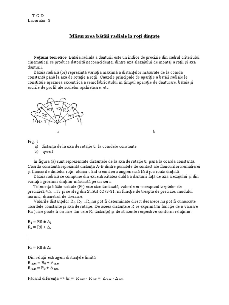 Noţiuni teoretice Bătaia radială a danturii este un indice de precizie din cadrul criteriului