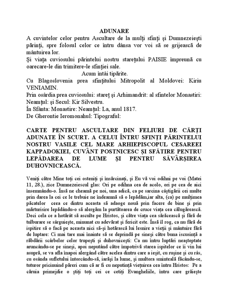celor duhovniceşti sau obişnuit a se face. Pentru că dacă nu mai întâi vom primi în