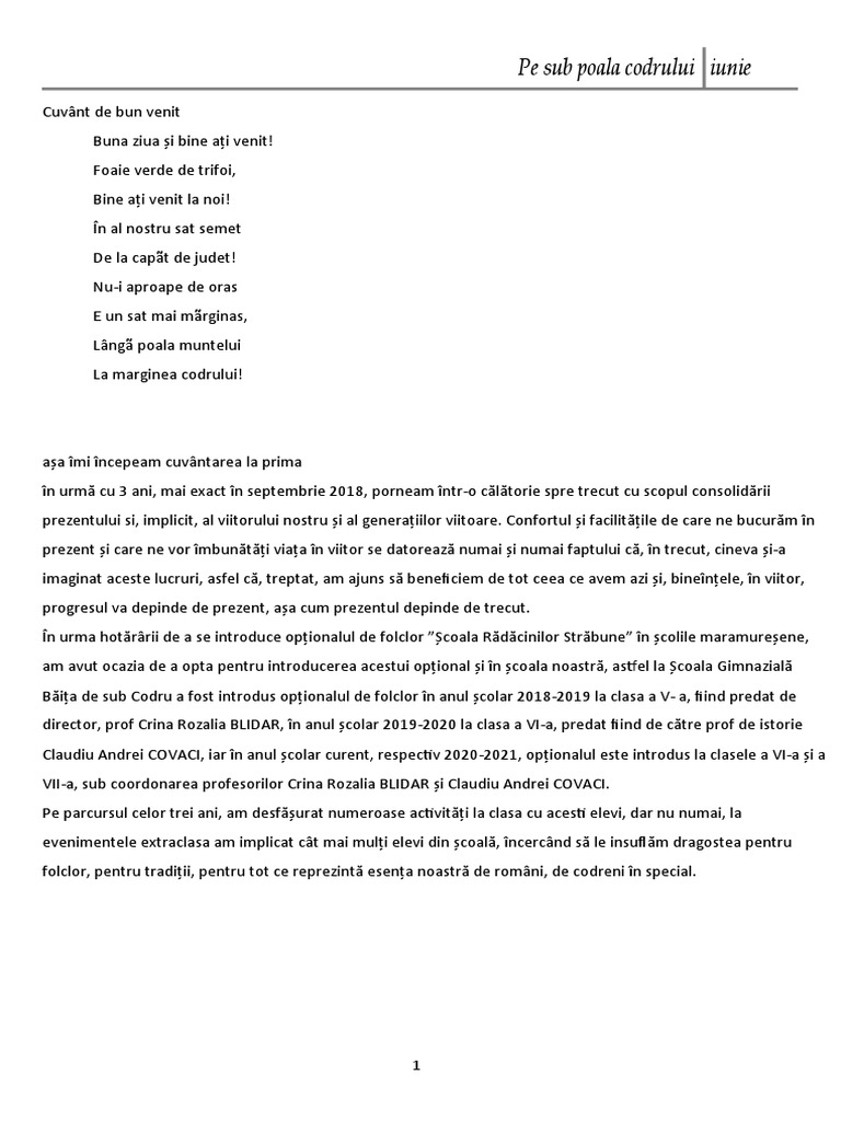 Claudiu Andrei COVACI, iar în anul școlar curent, respectiv 2020-2021, opționalul este introdus la clasele a VI-a și a