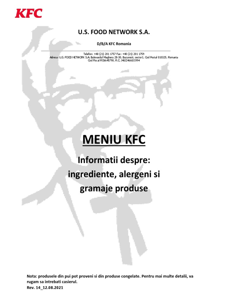 KFC Menu Informatii Suplimentare