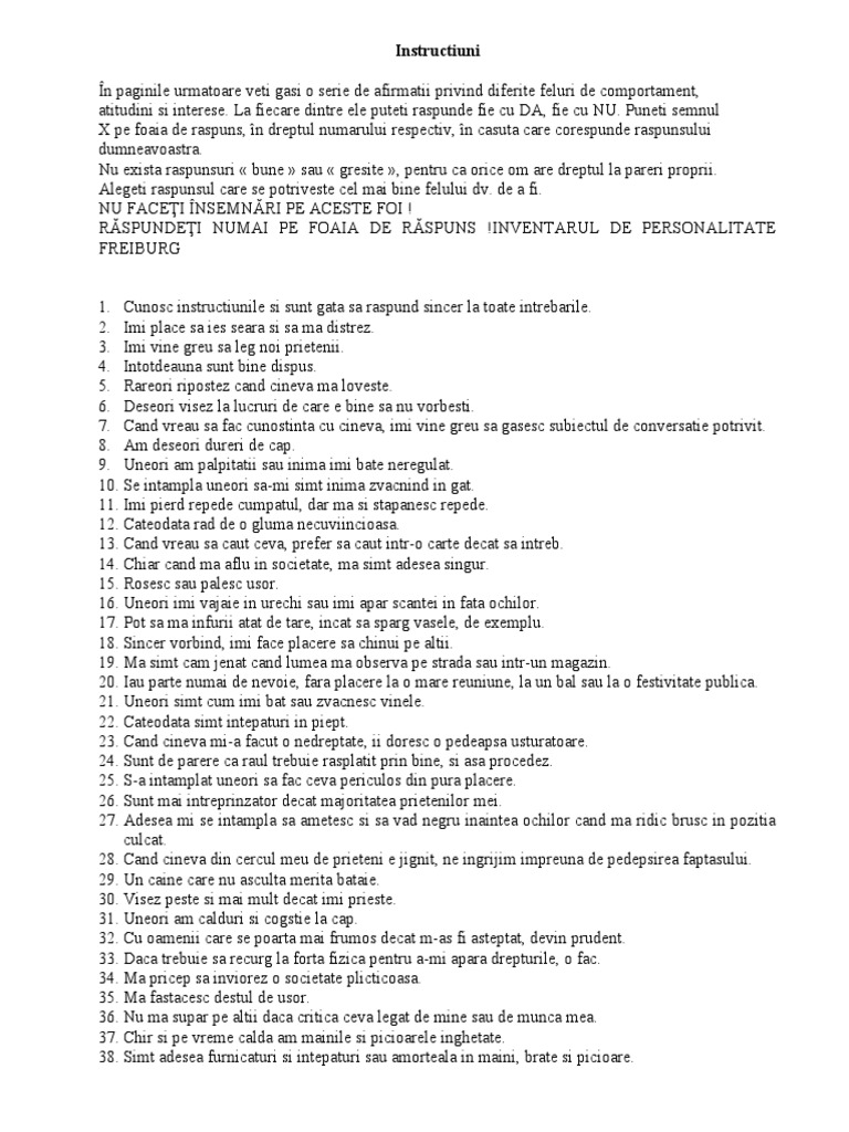 În paginile urmatoare veti gasi o serie de afirmatii privind diferite feluri de comportament,