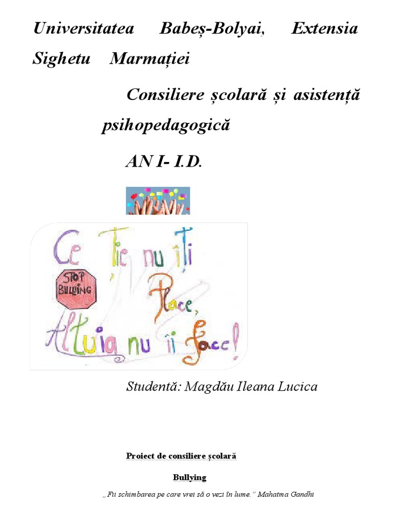 atât victima, cât și agresorul. Tocmai de aceea, acesta nu trebuie tolerat sub nicio formă.