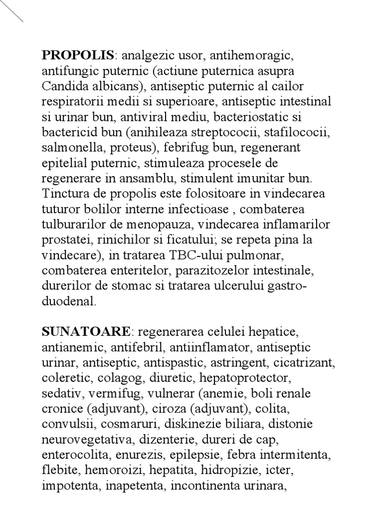 sedativ, vermifug, vulnerar (anemie, boli renale