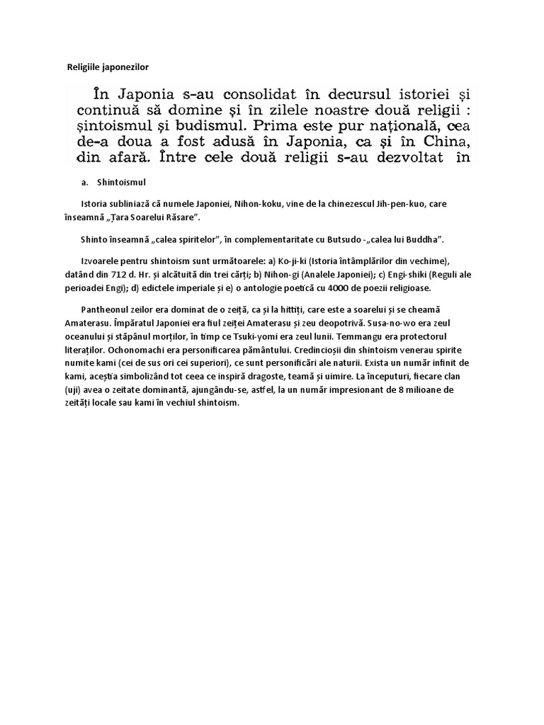 În istorie constatăm că astăzi religia japoneză cunoaşte 70 milioane shintoişti şi 44 milioane