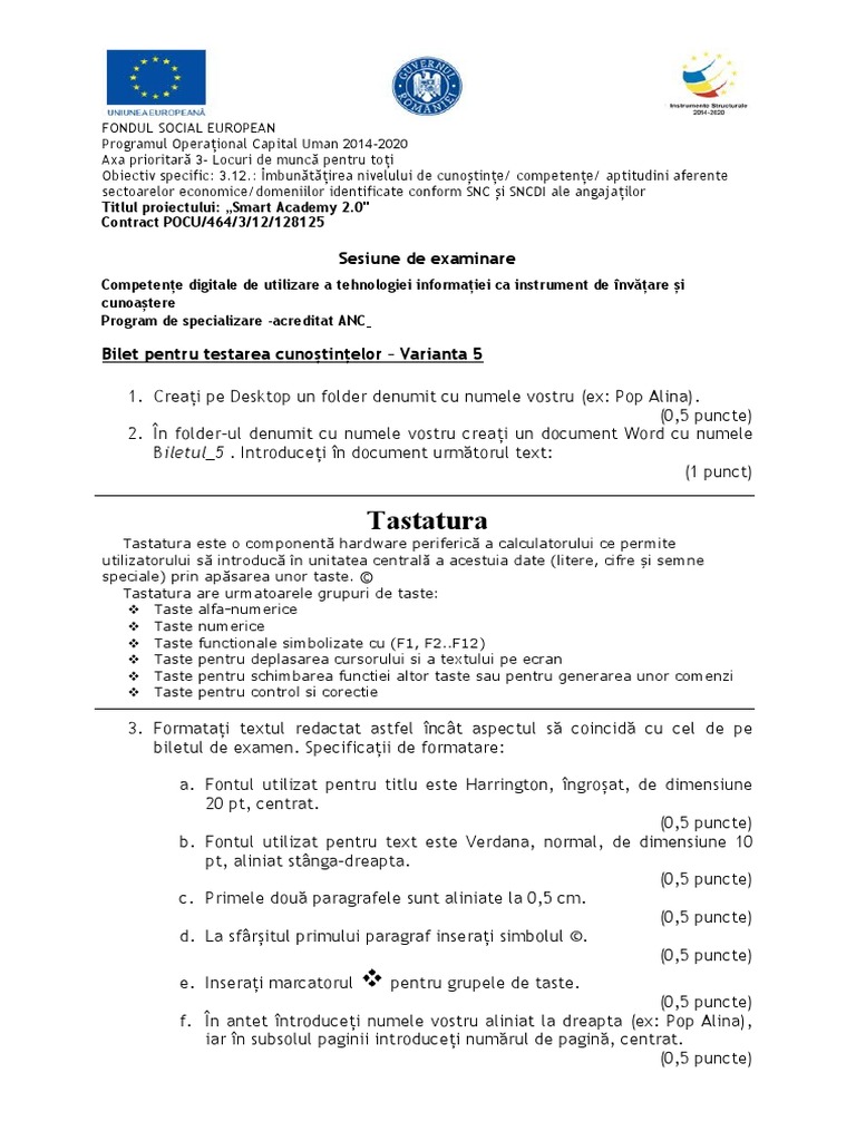 Bilet pentru testarea cunoștințelor – Varianta 5